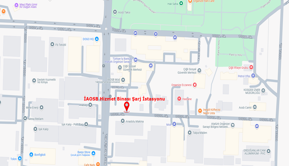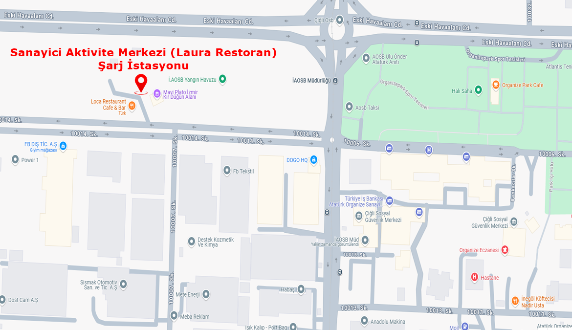 İzmir Atatürk Organize Sanayi Bölge Müdürlüğü Hizmet Binasının otoparkı ile Sanayici Aktivite Merkezi (Laura Restoran) otopark alanında elektrikli araç şarj istasyonları hizmet vermeye başlamıştır.