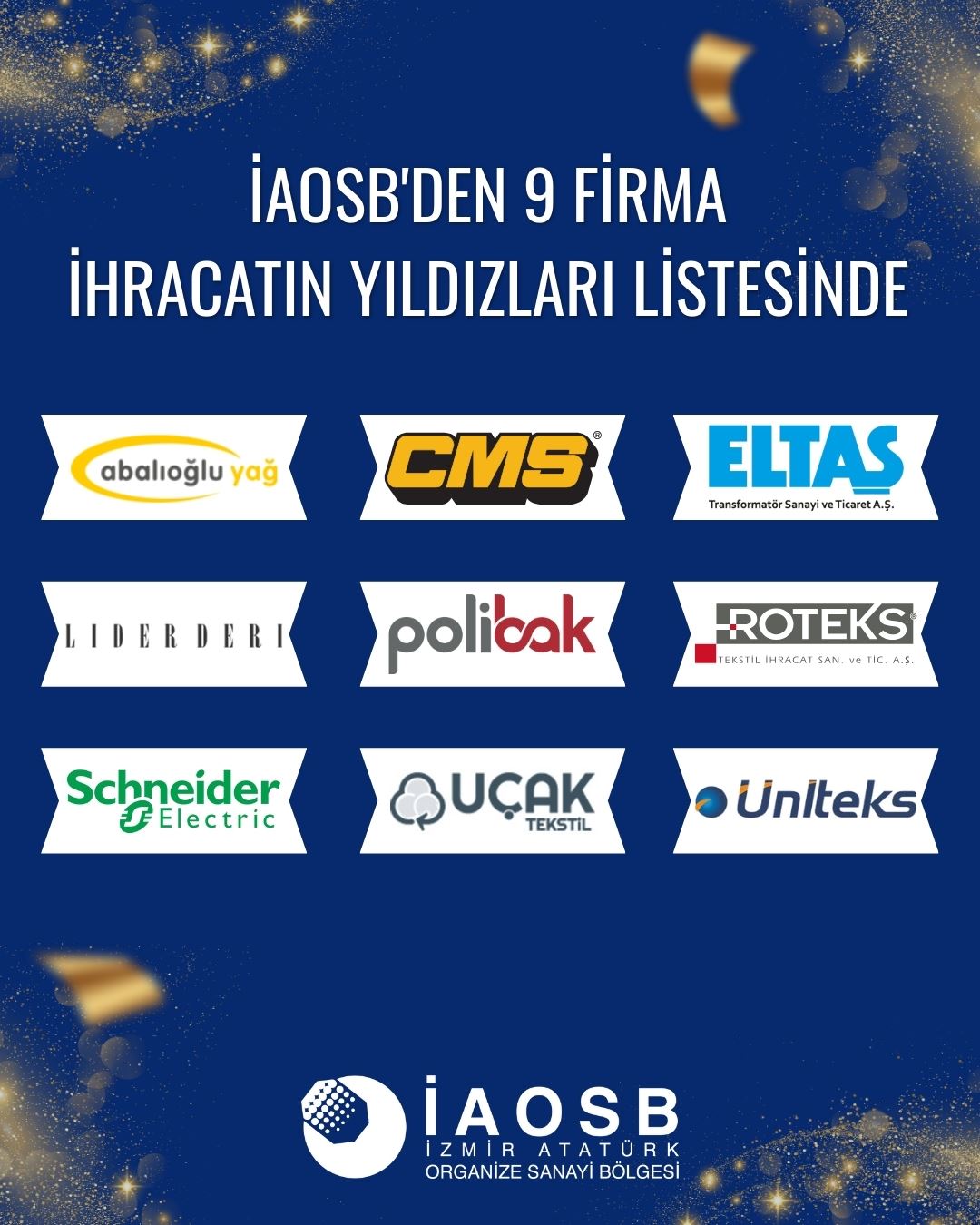 “Zorlu küresel ve ekonomik koşullara rağmen İhracatın Yıldızları listesinde yer alan firmalarımız, bölgemizin üretim gücünü ve ihracat kabiliyetini bir kez daha ortaya koymuştur. Bu başarı, yalnızca firmalarımızın değil, İAOSB’nin ve ülkemiz sanayisinin ortak gururudur.”
