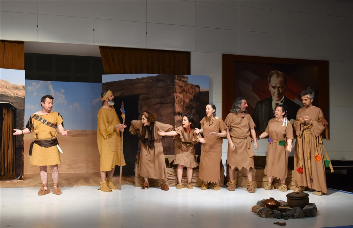 İAOSB Tiyatro Kulübü Başkanı Hakan Susuz tarafından yazılıp yönetilen “Gobeller”, Kavimler Göçü döneminde Mısır çöllerine kadar uzanan bir Türk kabilesinin, yeniden göç etmek istemeyen yöneticileri ile halk arasındaki çekişmesini mizahi bir anlatımla sahneye taşıdı.