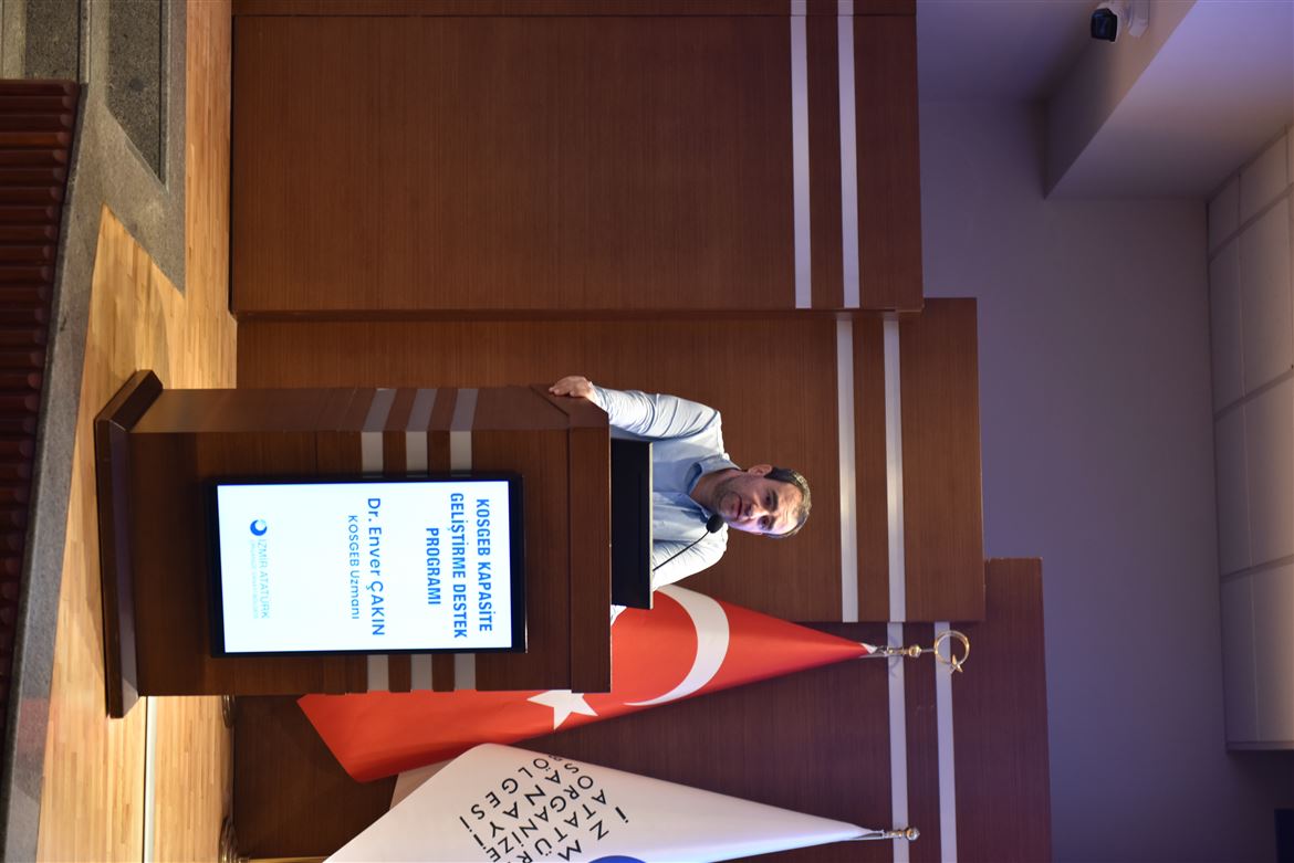 KOSGEB KOBİ Uzmanı Dr. Enver Çakın, İAOSB’de düzenlenen toplantıda “Kapasite Geliştirme Destek Programı”nın üçüncü çağrısını anlattı. Program, KOBİ’lerin üretim gücünü artırmayı ve büyük işletmelerle iş birliklerini teşvik etmeyi hedefliyor.